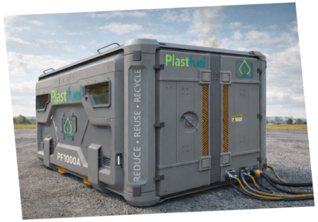 ist ein KI-optimierter 40ft-Container zur Umwandlung von bis zu 5 Tonnen nicht recycelbarer Kunststoffe pro Tag in synthetischen Kraftstoff und Energie.