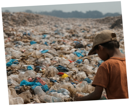 Ein großer Teil davon ist nicht recyclingfähig und landet in Deponien, Flüssen oder wird unkontrolliert verbrannt.