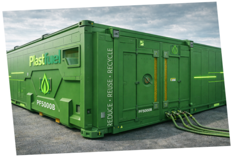 ist ein KI-optimierter 40ft-Container zur Umwandlung von bis zu 5 Tonnen nicht recycelbarer Kunststoffe pro Tag in synthetischen Kraftstoff und Energie.